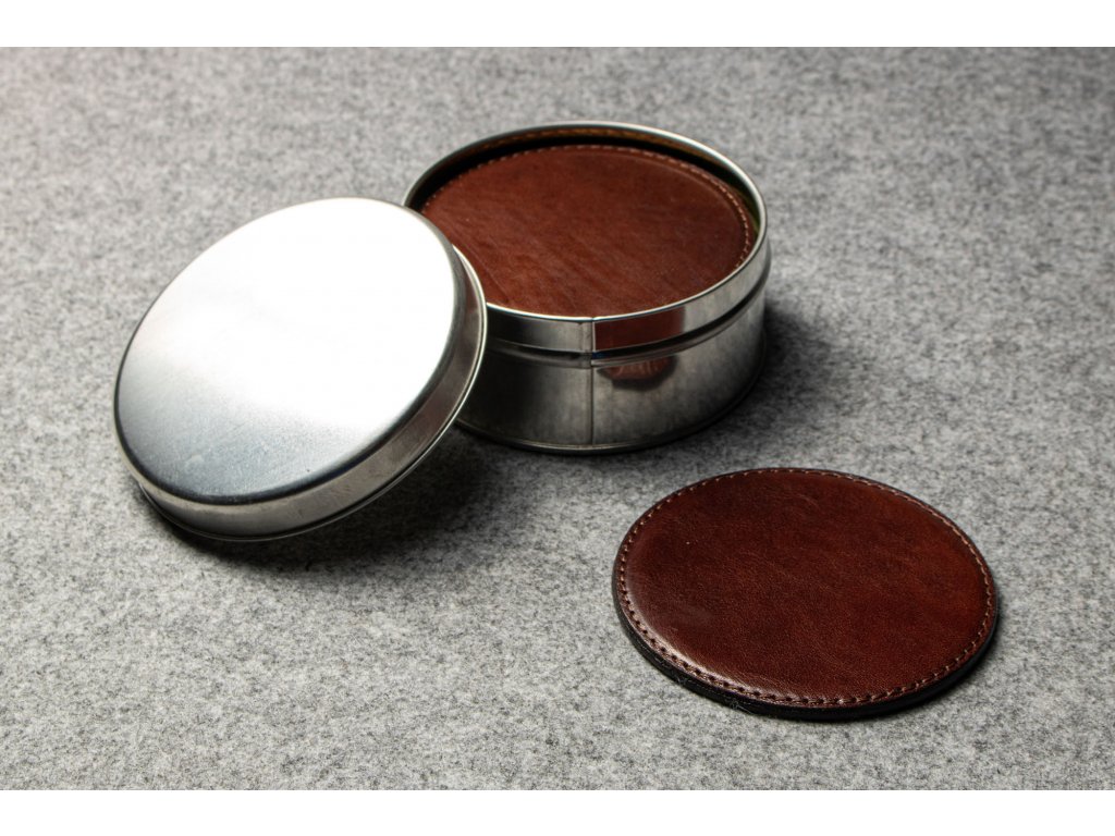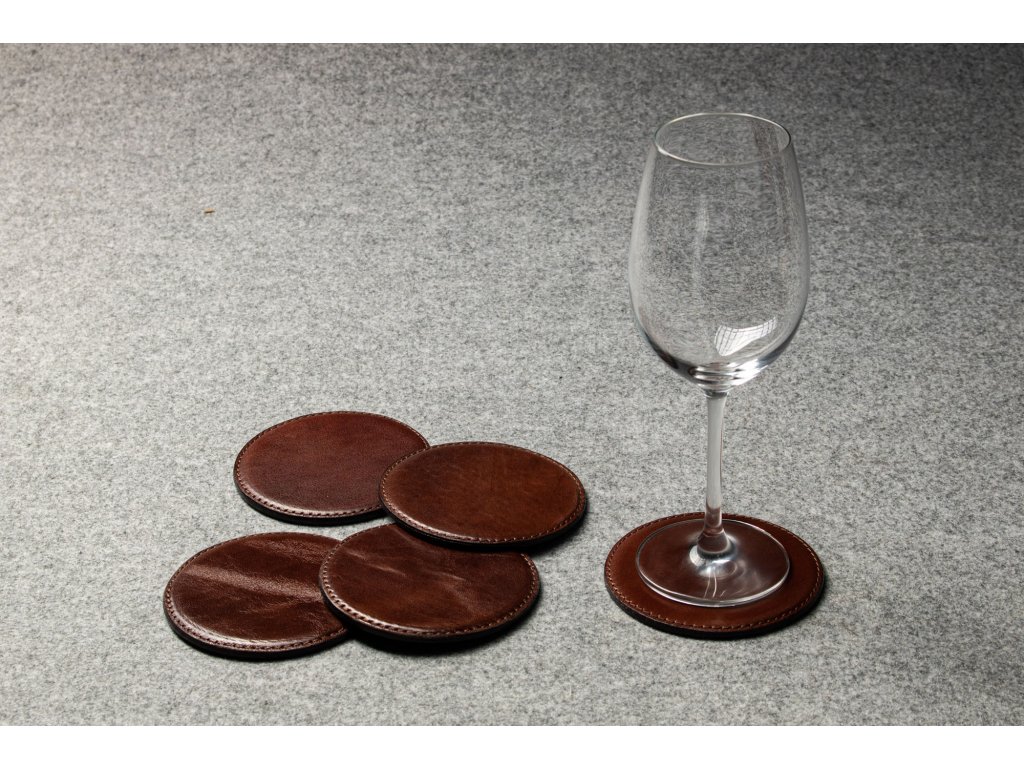 Podtácek je zhotovený z pravé hovězinové usně s podlepem z černé usně. Vložená vnitřní vrstva vytváří vystouplý profil podtácku.
