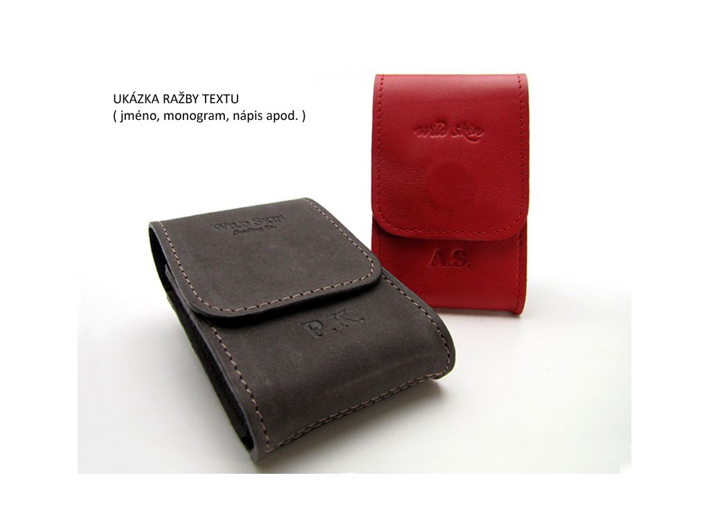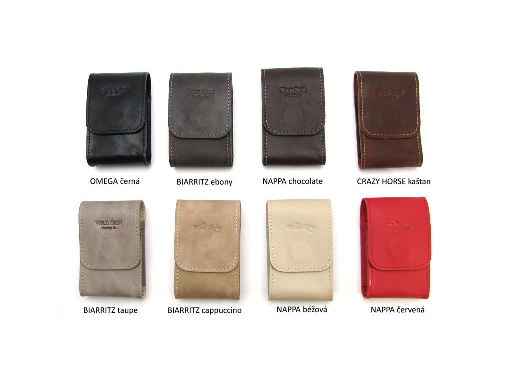 Obal na standardní rozměr cigaretové krabičky pro 20 ks cigaret. Použitým materiálem je pravá hovězinová kůže. Tento obal nabízíme v několika barevných provedeních - aktuální nabídka je zobrazena po kliknutí na detail produktu. Horní klopa obalu je doplněna magnetem, pro pohodlné otevírání a zavírání obalu. Navíc magnet může sloužit jako "držák" Vašeho zapalovače. Na klopě je ražba loga WILD SKIN script.