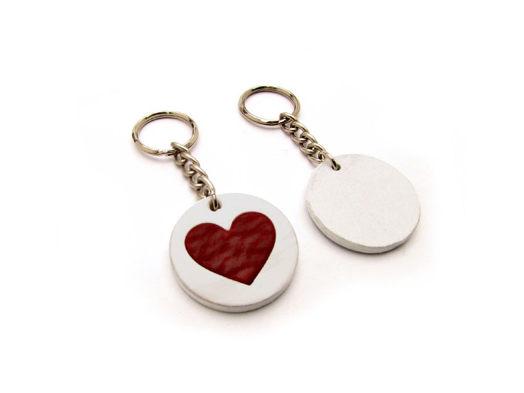 Ručně vyráběná kožená klíčenka zhotovená ze dvou typů hovězinové usně. Hlazené, lakované hrany. Klíčenková mechanika - řetízek a klíčenkový kroužek. Rozměr klíčenky: průměr 40 mm, tloušťka 7 mm. Elegantní ozdoba vašich klíčů a příjemná na dotek :-)