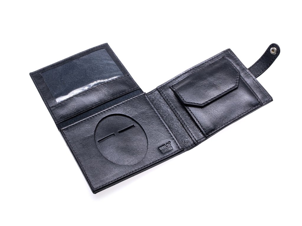 Kožená dokladovka KRIMINÁLNÍ POLICIE s mincovkou, klopou a přihrádkou na bankovky BIARRITZ BLACK