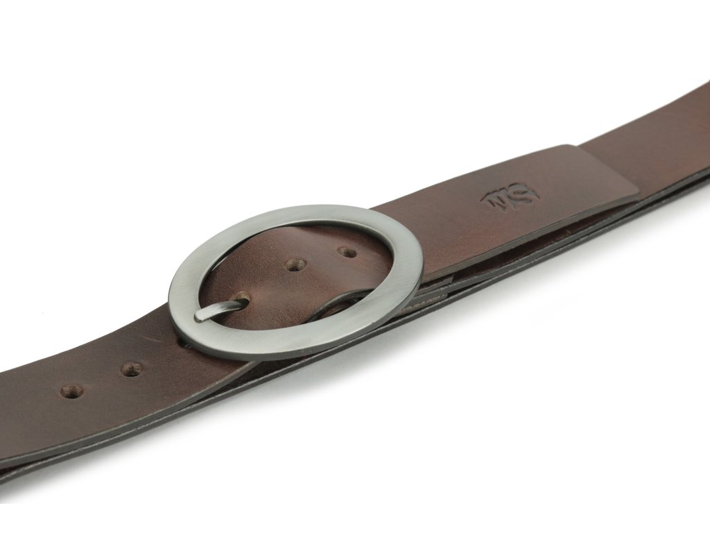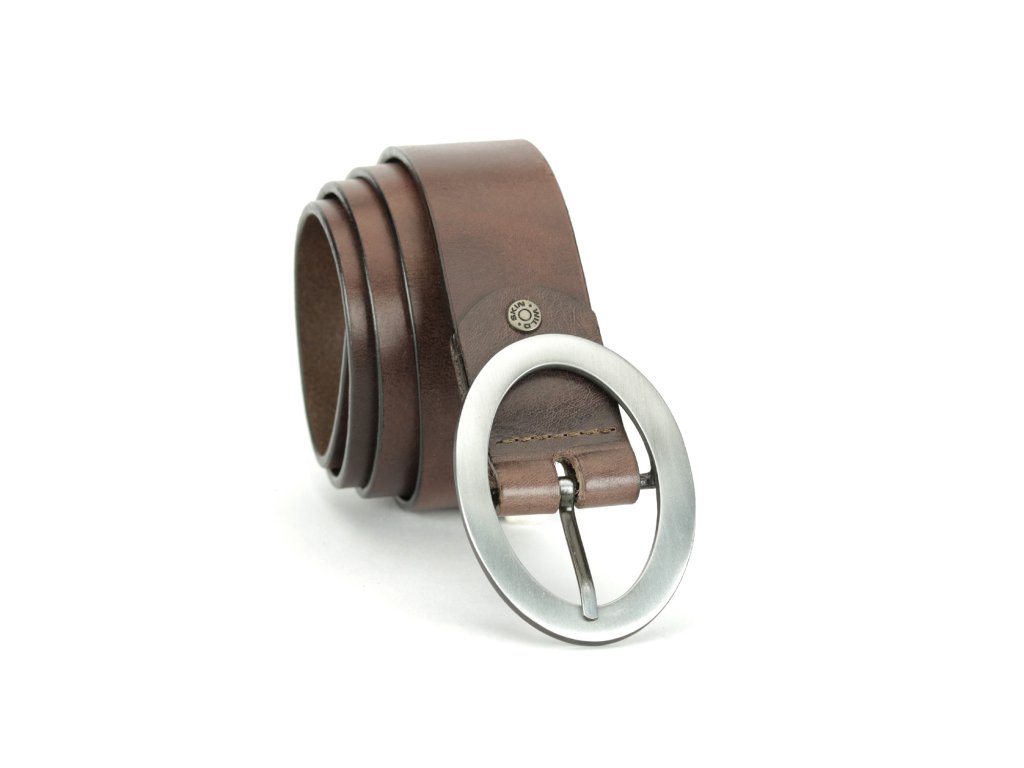 Poctivý, ručně zhotovený kožený opasek z pravé italské hovězinové usně, odstín tmavě hnědá, polomat s jemnou přírodní kresbou zdůrazňující přírodní charakter materiálu. Charakteristická vlastnost této usně - pull-up efekt, mírně zesvětlává v ohybu. Opasek má lakované hrany a upravený rub, což zaručuje, že nedojde k zabarvení oděvu. Useň splňuje všechny atesty na zdravotní nezávadnost. Oválná přezka je provedená v povrchové úpravě starozinek, ručně leštěná patina, která neobsahuje alergenní nikl ani jiné těžké kovy. Logo WILD SKIN je provedeno reliéfní ražbou. Opasek lze snadno zkrátit pomocí šroubku WILD SKIN, který spojuje opasek a kožený díl se sponou. Šířka opasku je 40 mm, síla usně 3,0 - 3,5 mm. Na přání dodáme volné poutko zdarma, požadavek napište do poznámky. Ke každému opasku dodáváme zdarma koženou klíčenku.