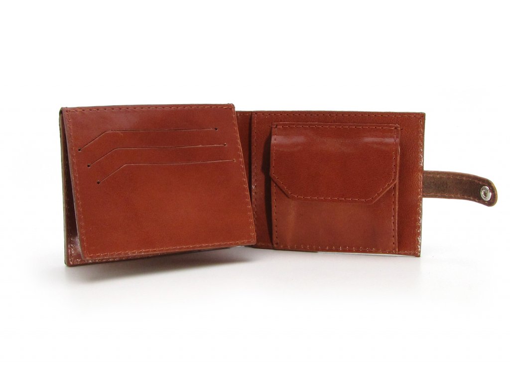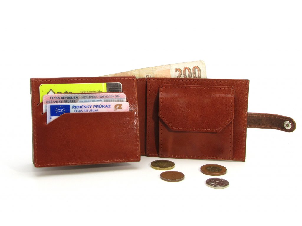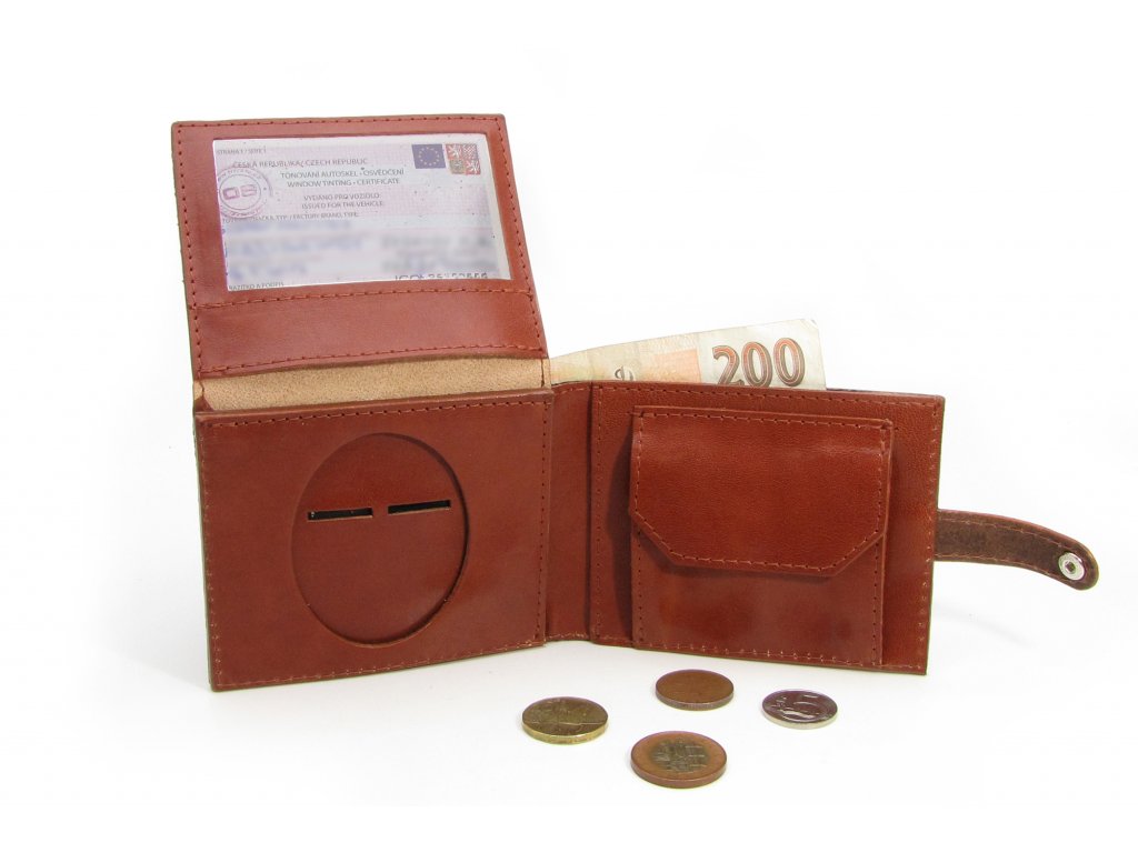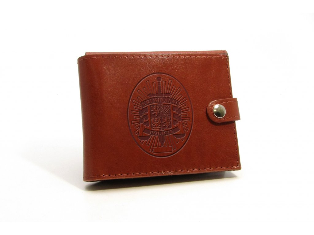 Kožená dokladovka KRIMINÁLNÍ POLICIE s mincovkou, klopou a přihrádkou na bankovky - Cognac
